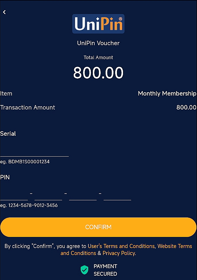 ⦿ BDMB দেখালে UniPin Voucher এ ব্যবহার করতে হবে।